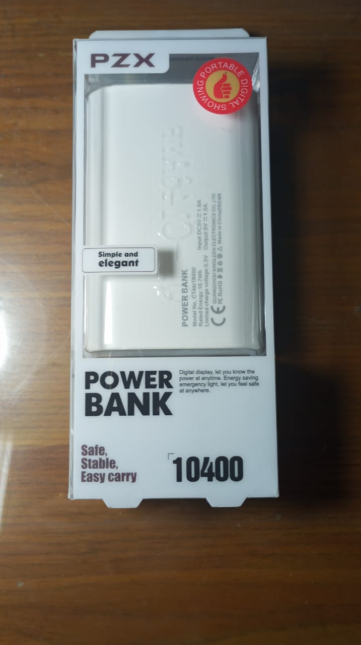 احصل على الطاقة التي تحتاجها في أي وقت وأي مكان مع الباور بانك PXZ، الحاصل على شهادة الجودة لضمان الأداء العالي والأمان. يتميز الباور بانك ببطارية قوية بسعة 10400 واط، مما يمنحك شحناً موثوقاً لأجهزتك الذكية لفترات طويلة.